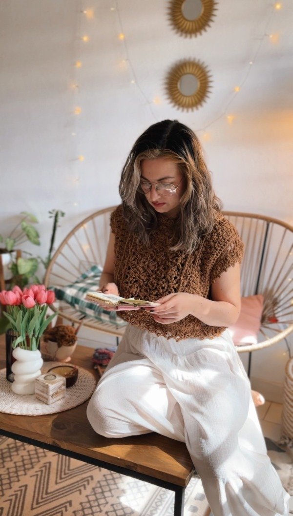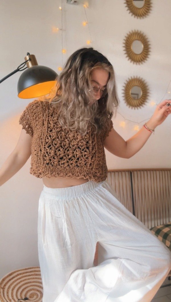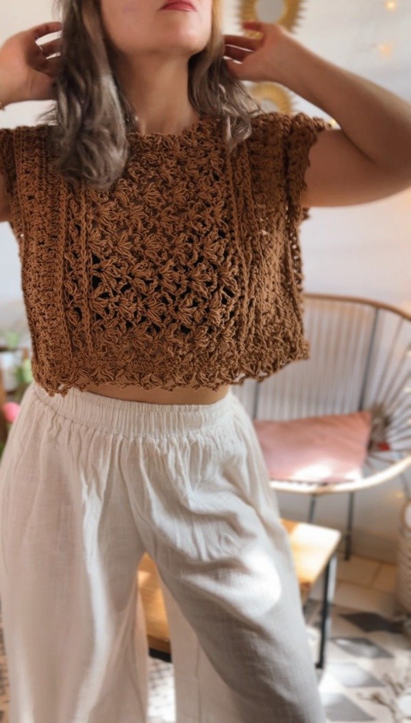 Esta remera pertenece a mi intuición. Es un diseño con estructura simple, pero lleno de pequeños detalles pensados desde el diseño y la moldería textil - como su subida de hombro-, para un calce perfecto (porque sí, los centímetros también importan en el crochet ).